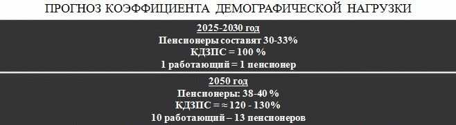Но с учётом демографических тенденций прогнозы неутешительны, т.к. нагрузка на трудового человека будет только расти. Так к 2025-2030 году на одного работающего будет приходиться один пенсионер, а к 2050-му году и того больше.